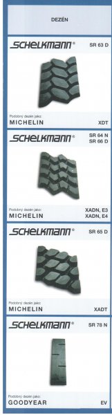SR63D - nový dezen ve třídě E4 s hloubkou dezenových drážek 150% ve srovnání se standartní novou pneumatikou. Dezen je vhodný pro dempry. Dobrý samočistící efekt a vynikající trakce díky hlubokým dezenovým drážkám. Kvalitní kaučuková směs, která má dobrou strukturní pevnost, je zárukou dlouhé životnosti. Nízké hodinové náklady.